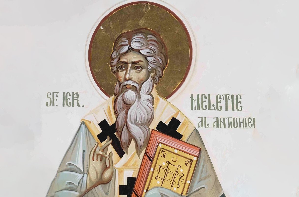 Sfântul Ierarh Meletie (†381) era de neam din Armenia şi s-a născut din părinţi creştini. Pentru credinţa, evlavia şi blândeţea sa, pentru înţelepciunea sa şi mai ales pentru dragostea lui fierbinte faţă de Dumnezeu, a fost silit să fie hirotonit episcop în Sevastia Armeniei. Nu după multă vreme a fost mutat ca Episcop al Veriei, în Siria. A vieţuit din vremea lui Constanţiu (337-361) până pe vremea lui Teodosie cel Mare (379-395), în timpul luptelor celor mari ale Bisericii împotriva uneltirilor ariene. În acea perioadă, Biserica Antiohiei era mult încercată, căci de la surghiunul Sfântului Eustatie (331) Antiohia nu avusese parte decât de episcopi arieni. Apoi, prin mutarea lui Eudoxie, tot arian şi el, de la Antiohia la Constantinopol, Biserica Antiohiei rămăsese fără păstor. Pentru faima ce avea, toţi s-au învoit şi l-au ales pe Sfântul Meletie ca arhipăstor. Lupta lui împotriva arienilor a atras mânia acelora care uneltind pe lângă Constanţiu au reuşit ca la numai o lună să-l dea jos de pe scaun şi să-l trimită în Armenia. În timpul lui Iulian Apostatul, Sfântul Meletie s-a reîntors pe scaunul Bisericii din Antiohia, dar iarăşi a fost exilat, din cauza luptei iniţiate de împărat împotriva creştinilor. În timpul dreptcredinciosului împărat Iovian, Sfântul Meletie s-a reîntors în Antiohia şi a reorganizat Biserica lui Hristos, dar a fost surghiunit a treia oară în timpul împăratului arian Valens. S-a întors în Antiohia abia în anul 378, sub domnia lui Graţian (367-383), când a întărit dreapta credinţă ortodoxă. În timpul lui Teodosie cel Mare a luat parte la lucrările celui de-al doilea Sinod Ecumenic din anul 381. A murit în timpul lucrărilor, la Constantinopol, iar moaştele sale au fost aduse în Antiohia şi aşezate în Biserica Sfântului Vavila.